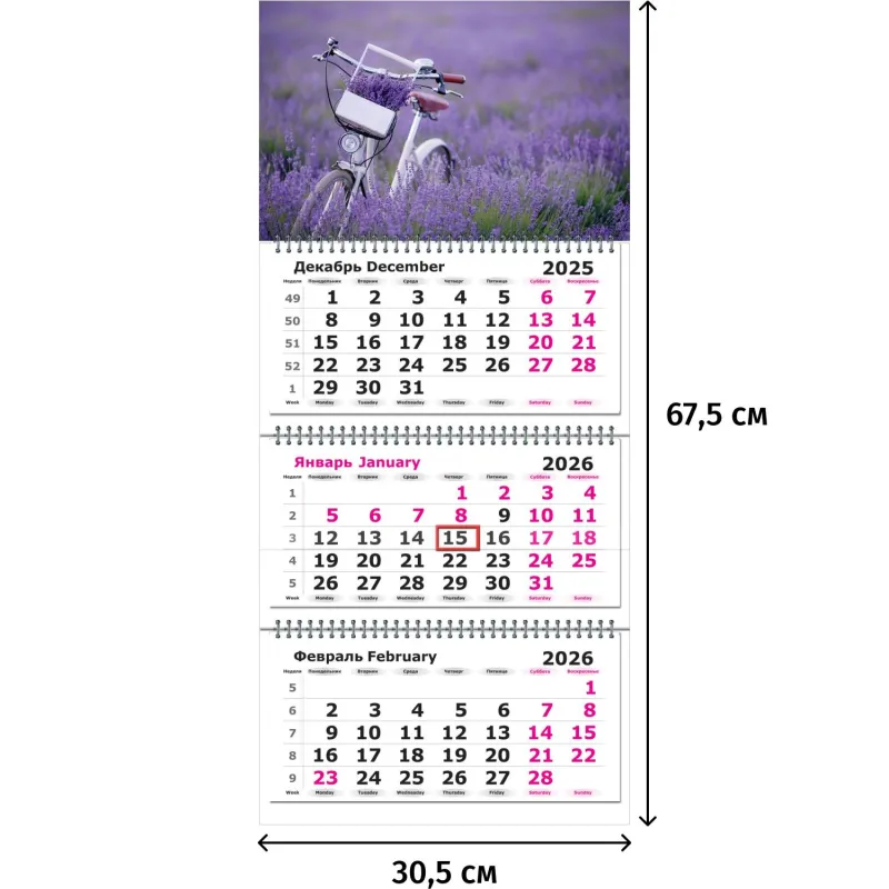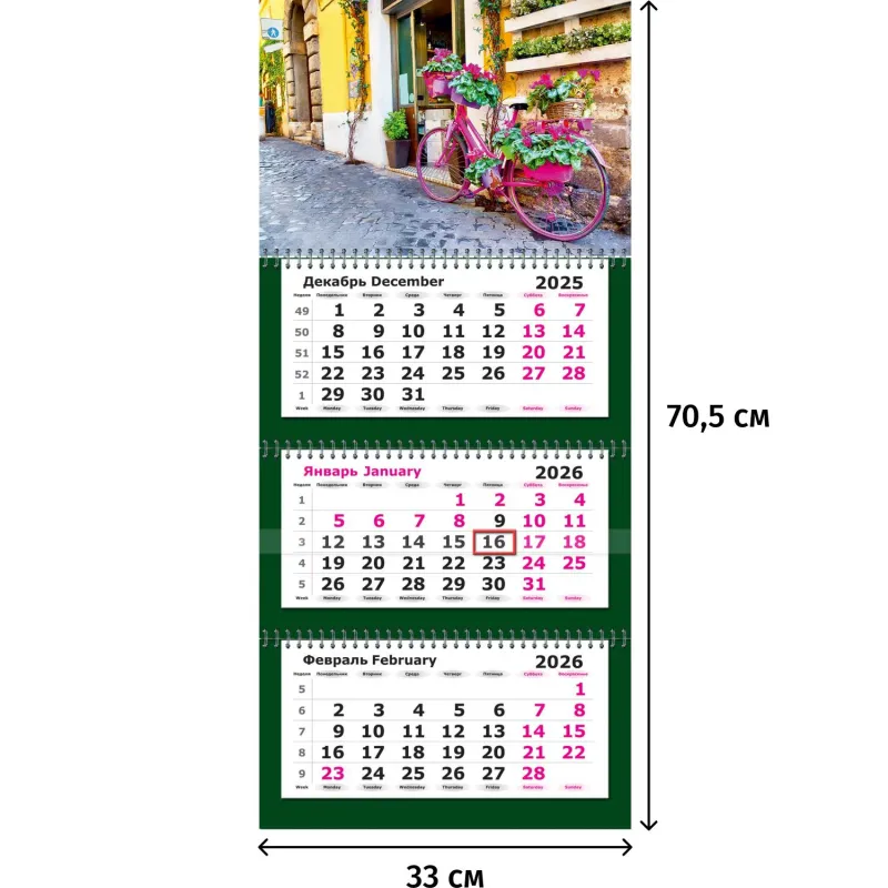 Календарь настенный 3-х блочный 2026 Велосипед 33×70.5 смНастенный трёхблочный календарь. Форм...