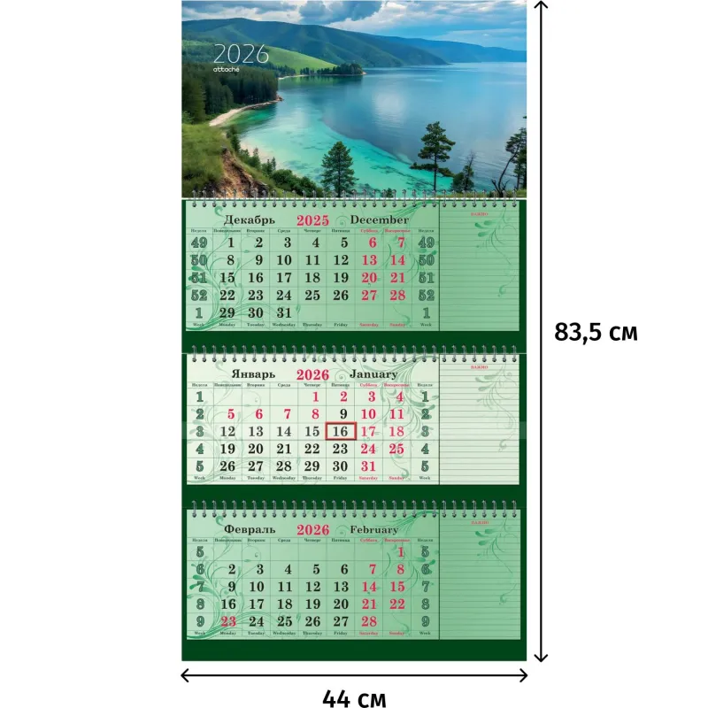 Календарь настенный трёхблочный Attache «Байкал» 2026, размер 44×83.5 см, нас...