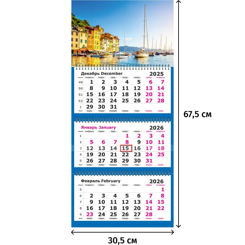Календарь настенный 3-х блочный 2026 Яхты на море 30.5×67.5 смНастенный трёхблочный отрыв...