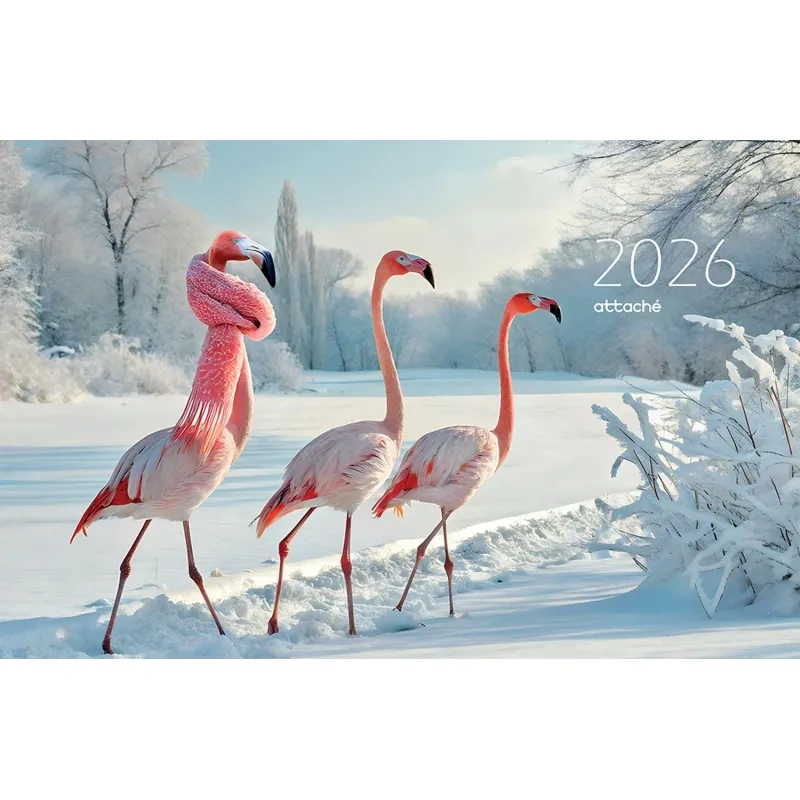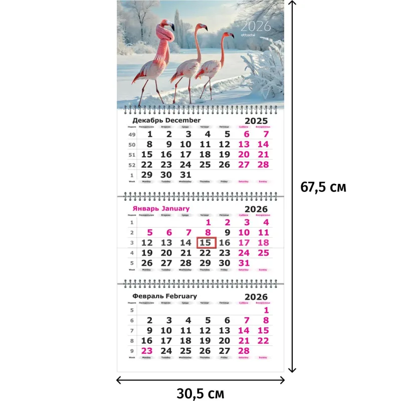 Календарь настенный трёхблочный Attache «Розовый фламинго» 2026, размер 30.5×67.5&...