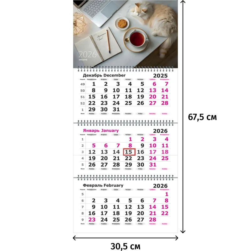 Календарь настенный трёхблочный Attache «Офис важное» 2026, размер 30.5×67.5 ...