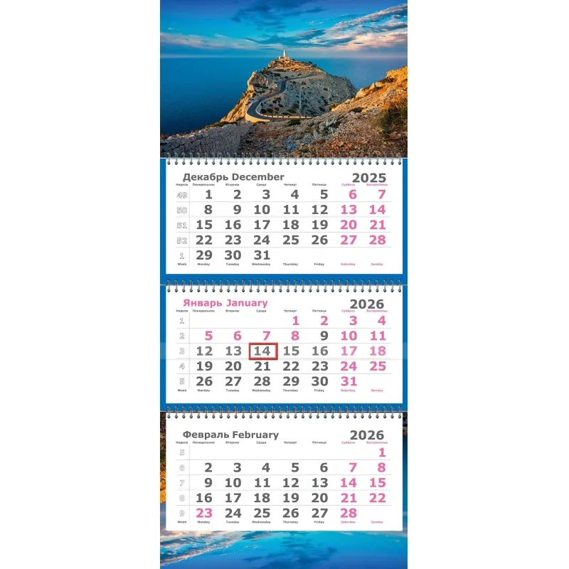 Календарь настенный 3-х блочный 2026 Супер-Премиум, Питер, 100г/м3, 340х805