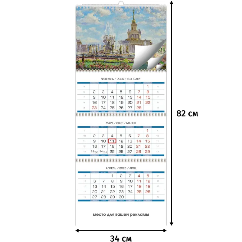 Календарь настенный 3-х блочный 2026 Очарование Москвы 340х820мм, 4 постера