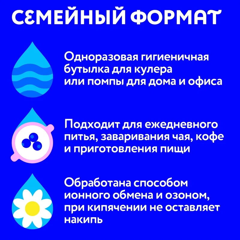 Негазированная питьевая вода Калинов Родник- это вода, которая идеально подходит на каждый день. Понимая необходимость большого потребления воды ежедневно, мы создали уникальные форматы 9 литров и 18.9 литров для кулера в одноразовых бутылках, которые сэкономят пространство хранения и подарят все богатство вкуса настоящей воды из оригинального природного источника Калинов Родник. Бутылки из 100% перерабатываемого сырья, которые можно сдать для дальнейшей переработки и помочь экологии нашей планеты. Негазированная питьевая вода Калинов Родник в бутылках больших форматов идеально подходит для готовки и кипячения. Эта вода, которую покупатели всегда выбирали для заваривания чая, кофе и высоко ценили за вкус и отсутствие накипи. Она отлично переносит термообработку и не наносит ущерб бытовым приборам, что особенно отмечают менеджеры предприятий HoReCa, используя Калинов Родник в больших бутылках для своих кафе, баров и ресторанов.