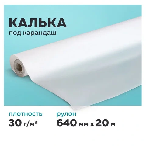 Имеет матовую шероховатую поверхность. При черчении карандашом по такой кальке карандаш не проскальзывает, оставляя четкий темный след равной толщины. Размер рулона составляет 640 мм х 20 м. Плотность - 30 г/м2.