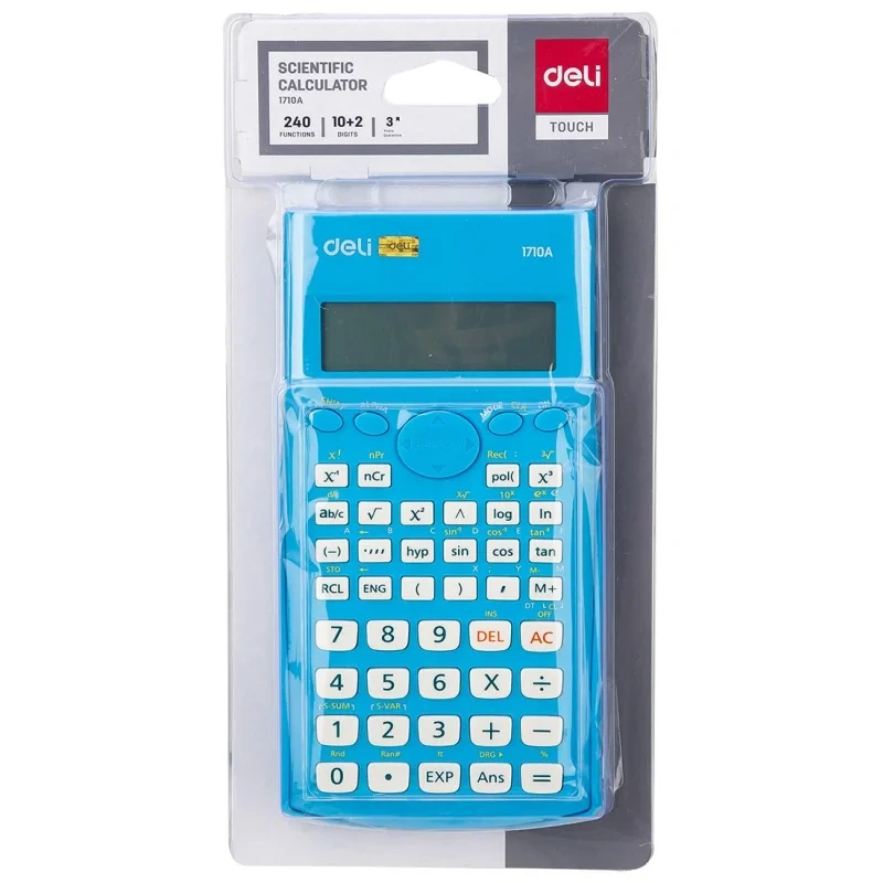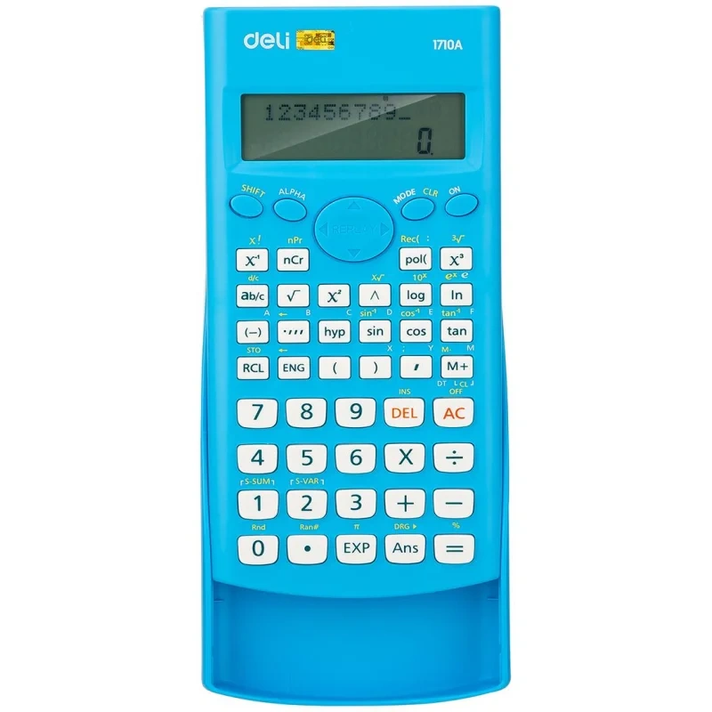 Калькулятор Deli E1710A научный в пластиковом синем корпусе поможет выполнить любые вычисления. Все оценят их компактность, удобство, прочность и надежность. Богатый функционал калькулятора содержит 240 функций из основных разделов математики: арифметика, алгебра, математический анализ, статистика . Практичная выдвижная крышка защищает калькулятор от грязи и случайного включения. Автоматическое отключение 7 минут без использования. Калькулятор разрешен к использованию на ЕГЭ по физике, химии и географии. Работает от батареек LR44×2 (в комплекте). Размер: 162×84×19 мм. Разрядность дисплея: 12. Тип дисплея: LCD, монохромный. Наличие кнопки «Коррекция последнего введенного значения» — да. Расчет процентов. Сочетается с другими изделиями коллекции Deli Rio. Используя товары этой коллекции Вы сможете подчеркнуть свою индивидуальность.