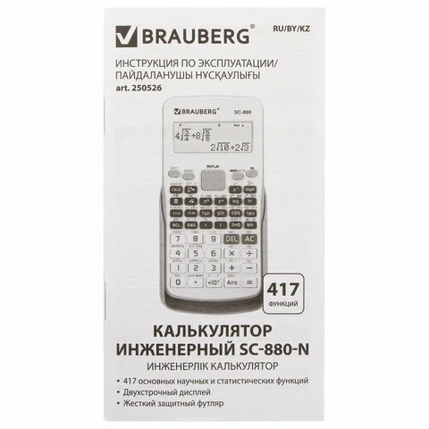 Калькулятор инженерный двухстрочный BRAUBERG SC-880-N (165х84 мм), 417 функций, 10+2 разрядов, БЕЛЫЙ