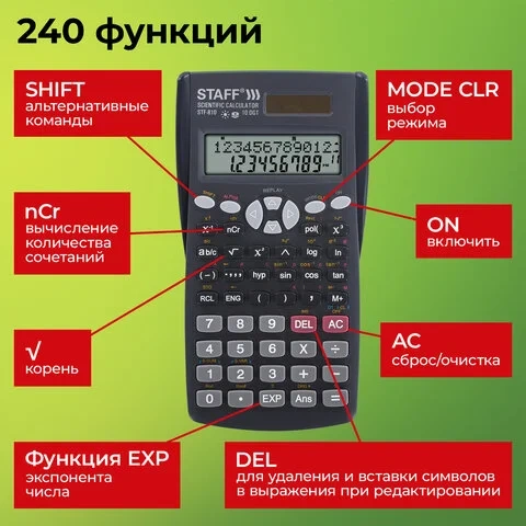 Калькулятор инженерный Staff STF-810 серый, 10+2 разрядов