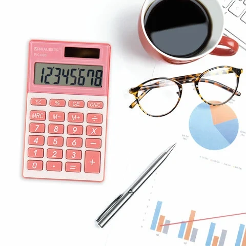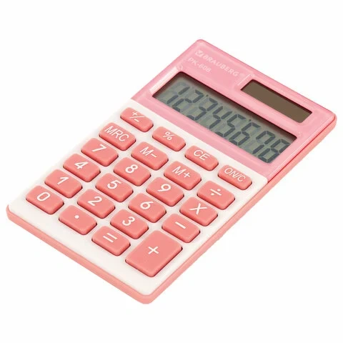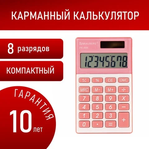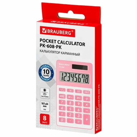 Калькулятор карманный BRAUBERG PK-608-PK (107x64 мм), 8 разрядов, двойное питание, РОЗОВЫЙ, 250523