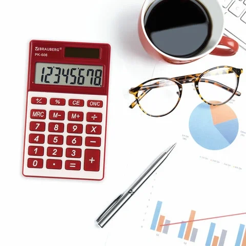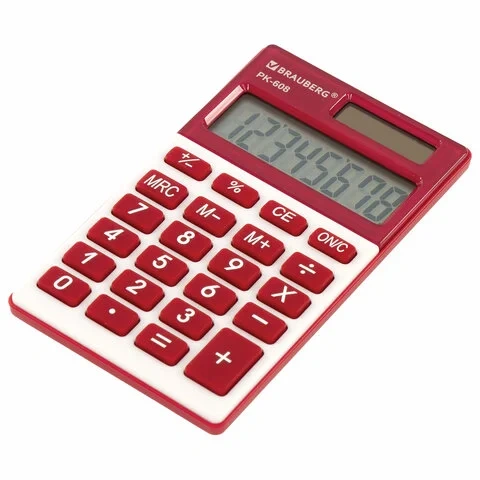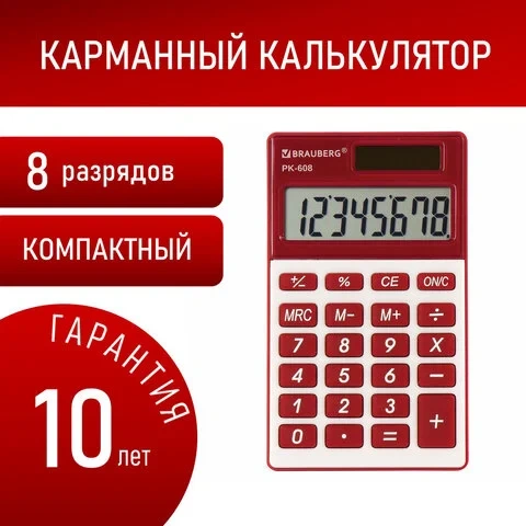 Калькулятор карманный BRAUBERG PK-608-WR (107x64 мм), 8 разрядов, двойное питание, БОРДОВЫЙ, 250521