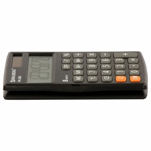 Калькулятор карманный BRAUBERG PK-865-BK (120x75 мм), 8 разрядов, двойное питание, ЧЕРНЫЙ, 250524