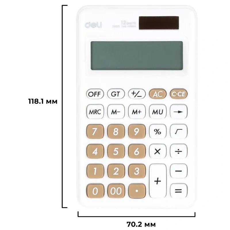 Калькулятор карманный Deli EM120,12-р, дв.пит., 118x70мм, белый