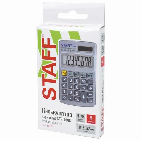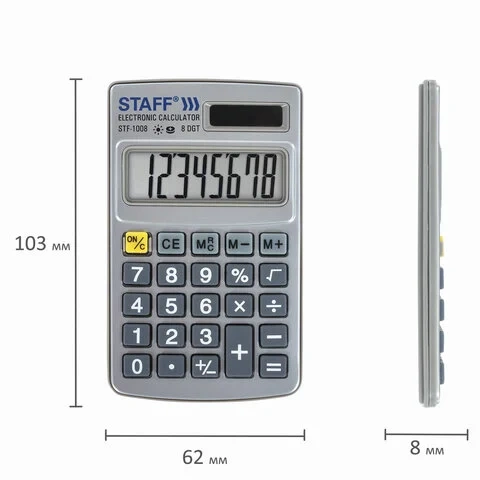 Хотите иметь калькулятор всегда под рукой? Тогда покупайте карманный калькулятор STAFF STF-1008 в нашем интернет-магазине и производите всегда точные расчеты!
