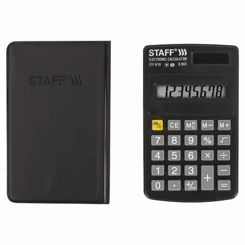 Калькулятор карманный Staff STF-818 черный, 8 разрядов