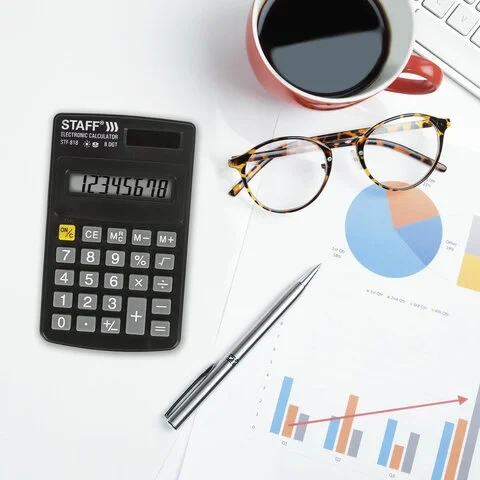 Хотите иметь калькулятор всегда под рукой? Тогда покупайте карманный калькулятор STAFF STF-818 в нашем интернет-магазине и производите всегда точные расчеты!