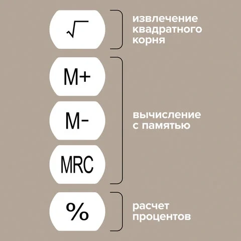 | Функционал | возведение в степень, вычисление с памятью, извлечение квадратного корня, расчет процентов, сложение |