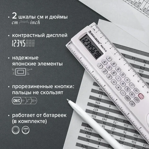 Калькулятор-линейка Brauberg MULTI-8 8 разрядов, 20см