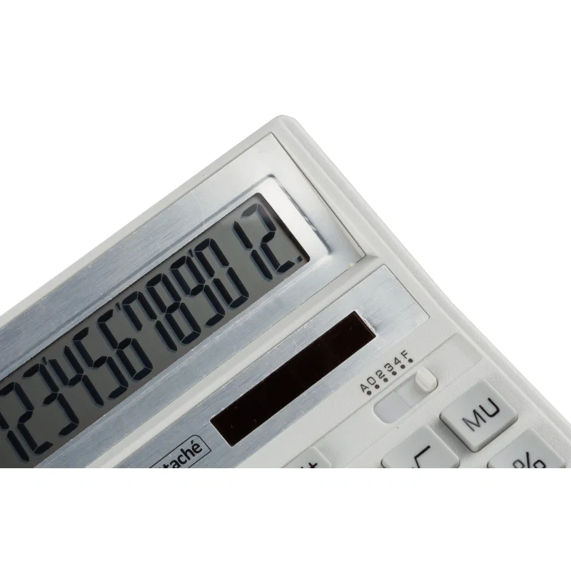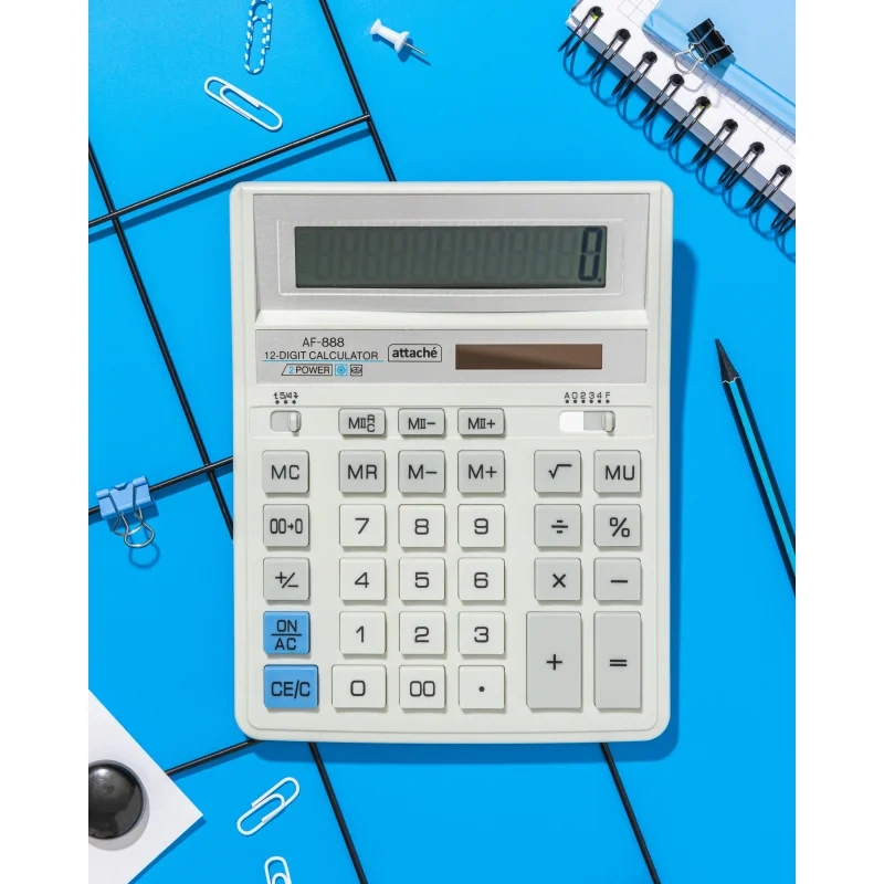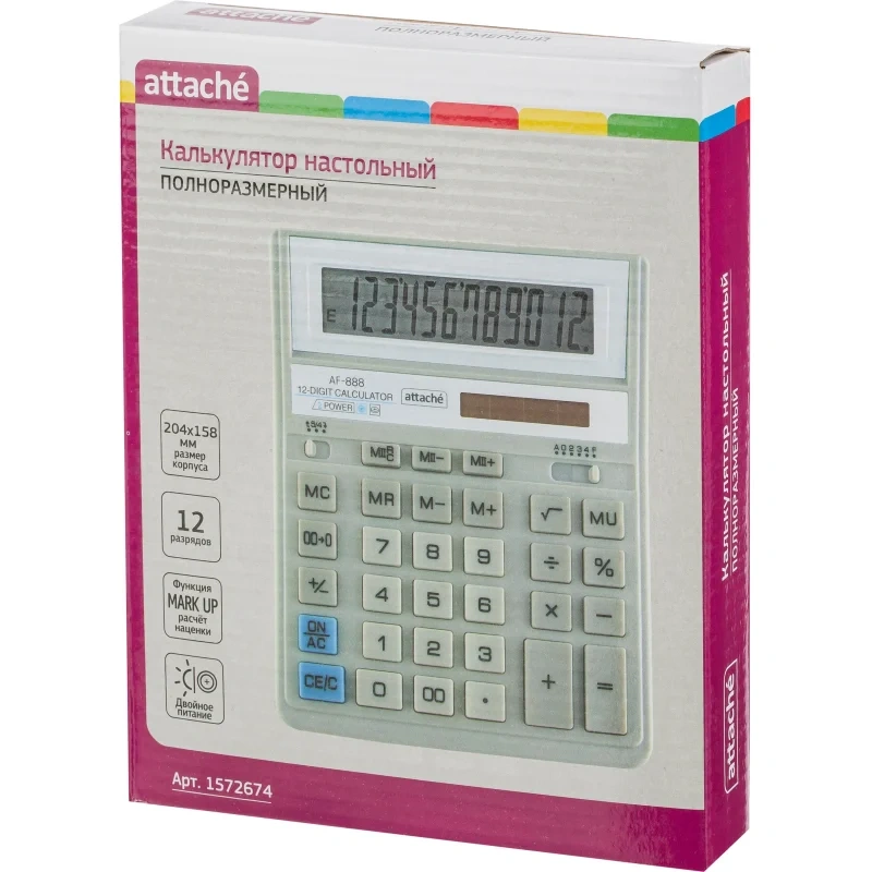 Калькулятор Attache AF-888 настольный в пластиковом корпусе белого/серого цвета с 12-разрядным ЖК-дисплеем . Имеет оптимальный набор вычислительных функций: основные математические операции, расчет процентов, расчет наценки, извлечение квадратного корня, запоминание промежуточных результатов. Калькулятор имеет функцию автоматического отключения питания. Удобная клавиатура снабжена кнопкой ввода двойного нуля. В калькуляторе имеется два источника питания: солнечная батарея и батарейка G10 (не подлежит замене), а так же есть место для установки батареи AA (не входит в комплект). Совместимые батарейки находятся в разделе 'Расходные материалы'. Размер корпуса: 204×158×38 мм. Размер дисплея: 111×24 мм. Материал кнопок клавиатуры: пластик. Перед использованием внимательно ознакомьтесь с инструкцией. Обращаем внимание, что батарейка не входит в комплектацию данного калькулятора. Cовместимые батарейки находятся в разделе 'Расходные материалы'.