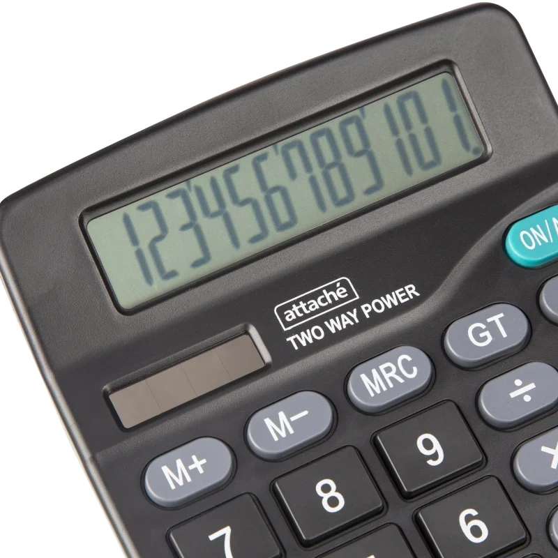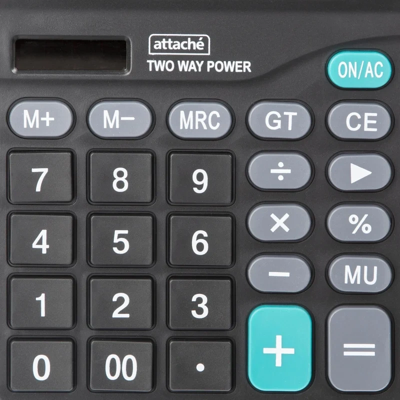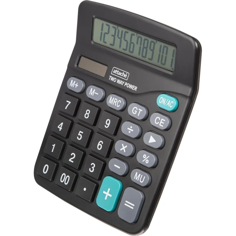 Калькулятор Attache ATC-555-12 F настольный в пластиковом корпусе с 12-разрядным монохромным ЖК-дисплеем. Имеет оптимальный набор вычислительных функций: основные математические операции, расчет процентов, запоминание промежуточных результатов. Позволяет корректировать введенное число. Удобная клавиатура снабжена кнопкой ввода двойного нуля. В калькуляторе имеется два источника питания: солнечная батарея и батарейка AA. Размер: 180×145×58 мм. Тип клавиатуры: пластик. Наличие металлической панели: нет. Автоматически отключается через 10 минут бездействия.