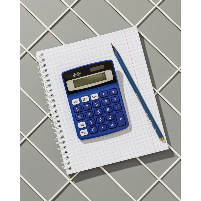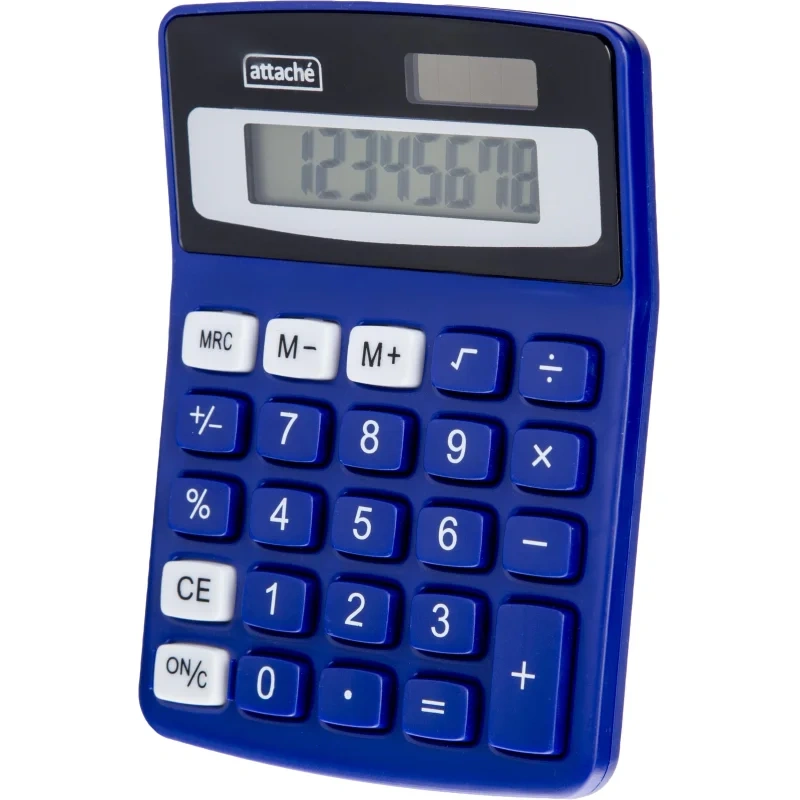 Калькулятор Attache настольный в пластиковом корпусе с 8-разрядным ЖК-дисплеем . Имеет оптимальный набор вычислительных функций: основные математические операции, расчет процентов, извлечение квадратного корня, запоминание промежуточных результатов. В калькуляторе имеется два источника питания: солнечная батарея и батарейка LR1130. Размер: 114×84×26 мм. Тип клавиатуры: пластик. Наличие металлической панели: нет. Обращаем внимание, что батарейка не входит в комплектацию данного калькулятора. Cовместимые батарейки находятся в разделе «Расходные материалы». Автоматически отключается через 10 минут бездействия. Наличие кнопки «Коррекция последнего введенного значения» — да.