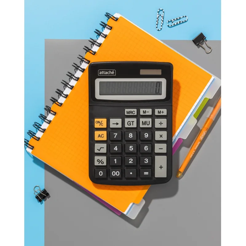 Калькулятор Attache настольный в пластиковом корпусе с 10-разрядным ЖК-дисплеем . Имеет оптимальный набор вычислительных функций: основные математические операции, расчет процентов, извлечение квадратного корня, запоминание промежуточных результатов. Позволяет корректировать введенное число. Удобная клавиатура снабжена кнопкой ввода двойного нуля. В калькуляторе имеется два источника питания: солнечная батарея и 1 батарейка LR1130 (в комплекте). Размер: 153×103×32 мм. Тип клавиатуры: пластик. Наличие металлической панели: нет. Автоматически отключается через 10 минут бездействия.