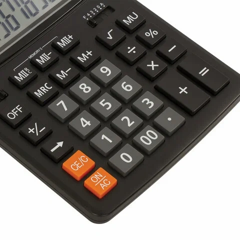 Калькулятор производит все основные арифметические действия: возведение в степень, вычисления с процентами, извлечение квадратного корня. Незаменим для бухгалтеров благодаря наличию клавиш двойной памяти, «00» и MU для расчетов налогов и торговой наценки. Переключатели округления и положения десятичного знака позволяют производить нужные настройки. Большой двенадцатиразрядный дисплей отображает большие значения с высокой точностью округления. Встроенный аккумулятор и солнечная батарея позволяют калькулятору работать при любом освещении, а клавиша выключения OFF и функция автоматического отключения (через 8-10 минут бездействия) позволяют максимально продлить срок его службы без замены батареи.