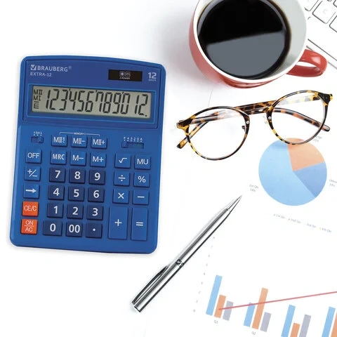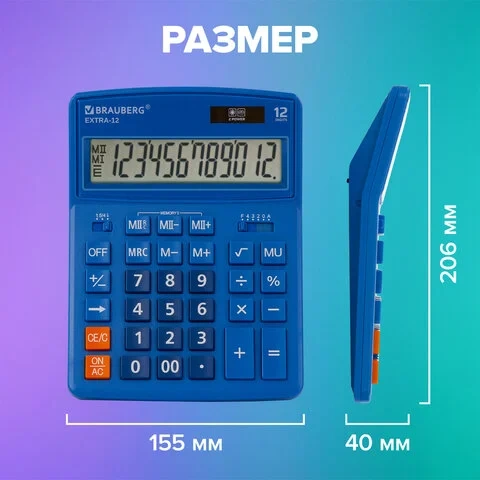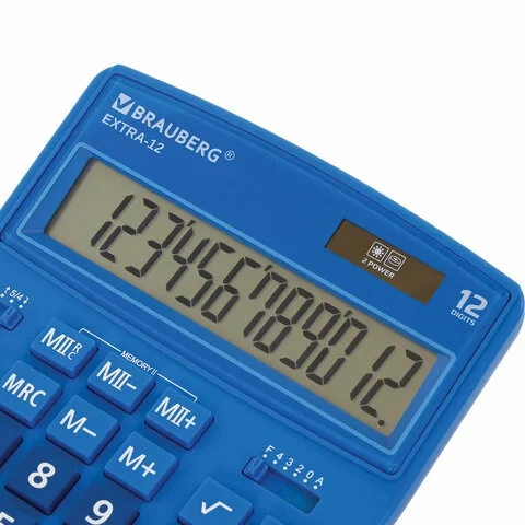 Калькулятор настольный BRAUBERG EXTRA-12-BU (206x155 мм), 12 разрядов, двойное питание, СИНИЙ, 25048