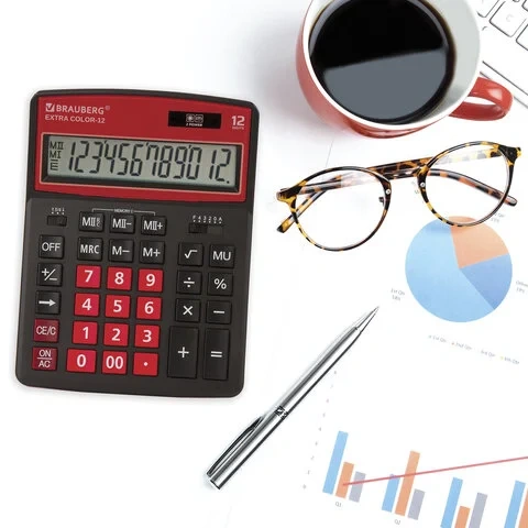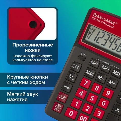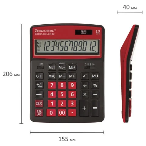 Калькулятор настольный BRAUBERG EXTRA COLOR-12-BKWR (206x155 мм), 12 разрядов, двойное питание, ЧЕРН