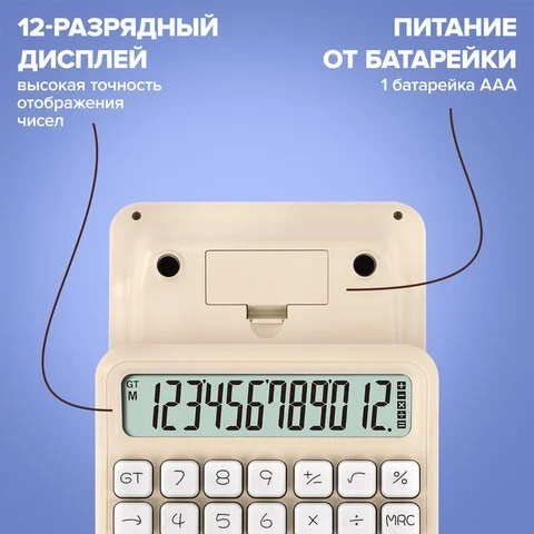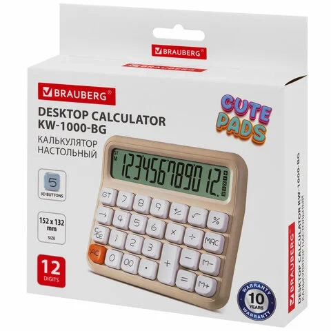 Калькулятор настольный BRAUBERG KW-1000-BG (152x132 мм), 3D-кнопки, 12 разрядов, бежевый, 272957