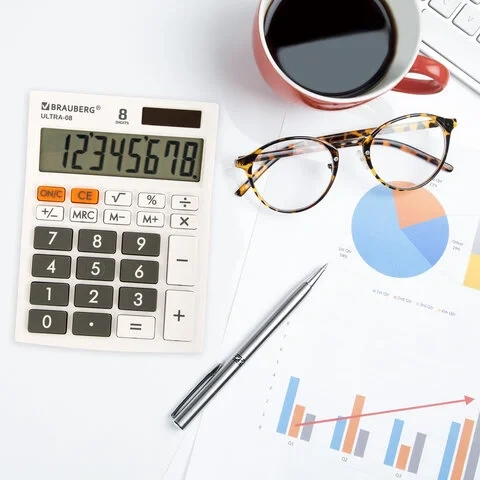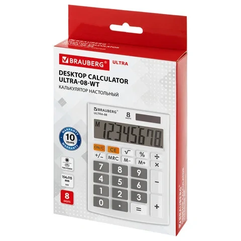 Калькулятор настольный BRAUBERG ULTRA-08-WT, КОМПАКТНЫЙ (154x115 мм), 8 разрядов, двойное питание, Б