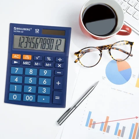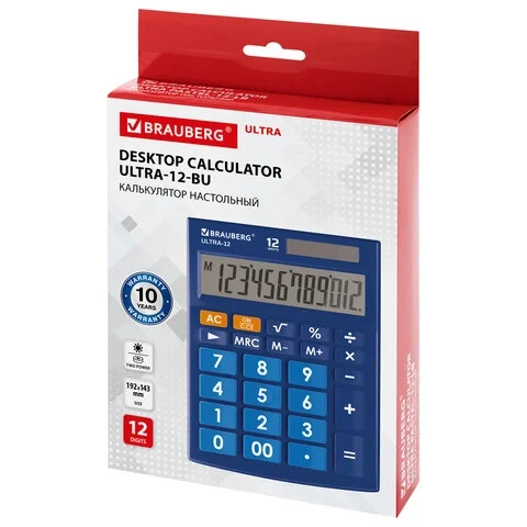 Калькулятор настольный BRAUBERG ULTRA-12-BU (192x143 мм), 12 разрядов, двойное питание, СИНИЙ, 25049