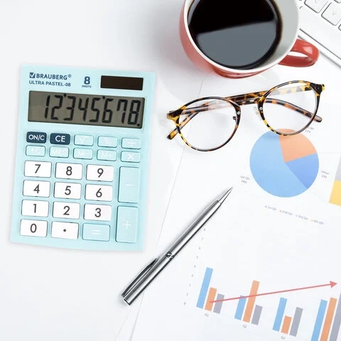 Калькулятор настольный BRAUBERG ULTRA PASTEL-08-LB, КОМПАКТНЫЙ (154x115 мм), 8 разрядов, двойное пит