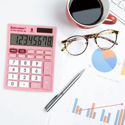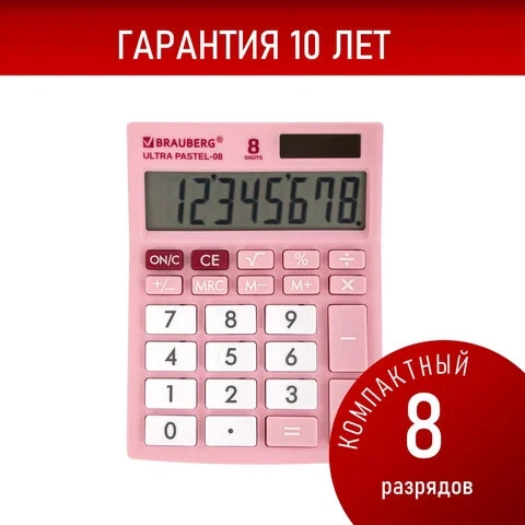 Калькулятор настольный BRAUBERG ULTRA PASTEL-08-PK, КОМПАКТНЫЙ (154x115 мм), 8 разрядов, двойное пит