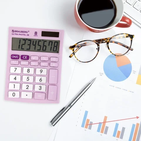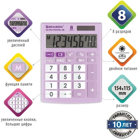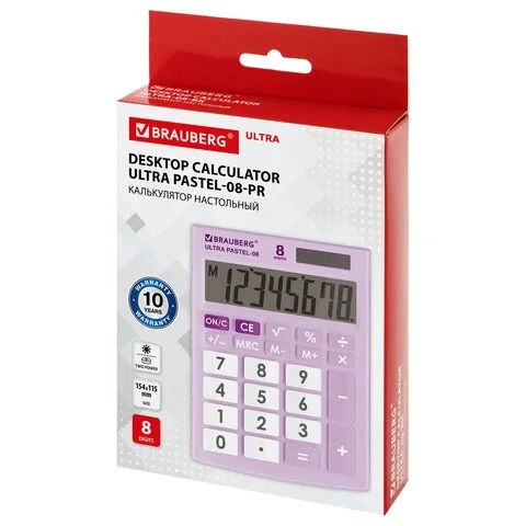 Калькулятор настольный BRAUBERG ULTRA PASTEL-08-PR, КОМПАКТНЫЙ (154x115 мм), 8 разрядов, двойное пит