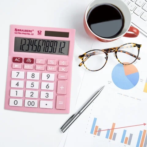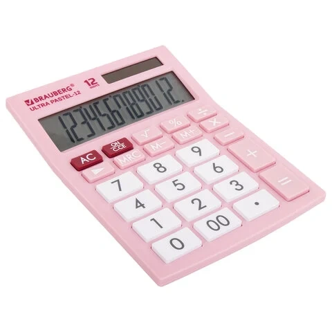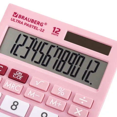 Калькулятор настольный BRAUBERG ULTRA PASTEL-12-PK (192x143 мм), 12 разрядов, двойное питание, РОЗОВ