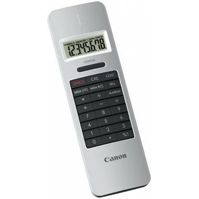 Canon X Mark Pointer - стильный восьмиразрядный калькулятор размером с ладонь со встроенным лазерным указателем для использования во время презентаций. Частично изготовленный из переработанных материалов Canon, он создан для работы или для личных нужд.