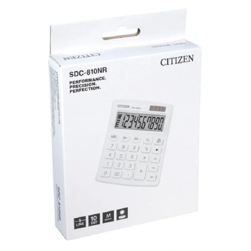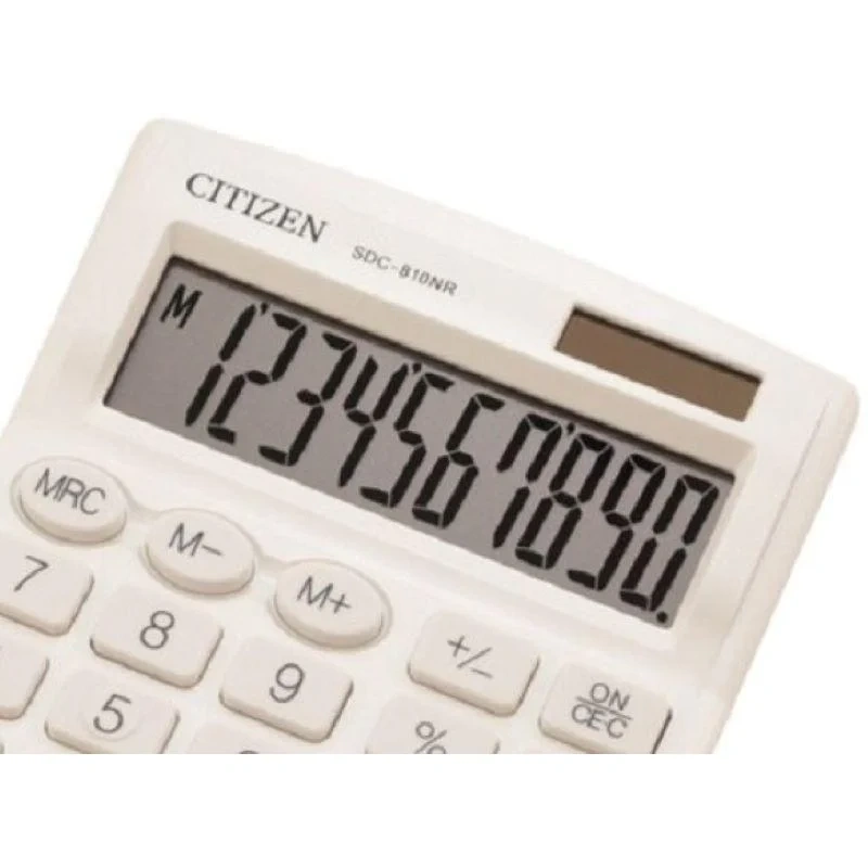 10-ти разрядный настольный калькулятор Citizen SDC-810NR- WH предназначен для выполнения арифметических операций. Оптимальный набор функций поможет автоматизировать расчёты: функция смены знака, коррекция последнего введенного значения. Двойное питание (солнечная батарея + батарея GP189(LR54)) и автоматическое отключение увеличивают срок службы. Размер калькулятора – 102*124*25 мм, вес – 94 г, цвет – белый. Упакован в картонную коробку. Гарантия 5 лет.