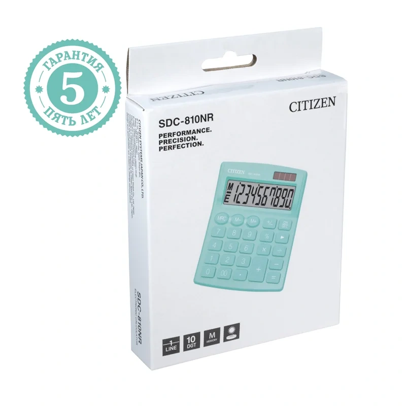 Калькулятор настольный Citizen SDC-810NR-GN бирюзовый, 10 разрядов