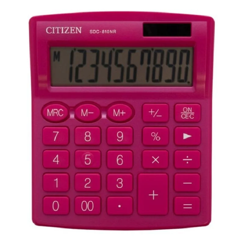10-ти разрядный настольный калькулятор Citizen SDC-810NR-PK предназначен для выполнения арифметических операций. Оптимальный набор функций поможет автоматизировать расчёты: функция смены знака, коррекция последнего введенного значения. Двойное питание (солнечная батарея + батарея GP189(LR54)) и автоматическое отключение увеличивают срок службы. Размер калькулятора – 102*124*25 мм, вес – 94 г, цвет – розовый. Упакован в картонную коробку. Гарантия 5 лет.