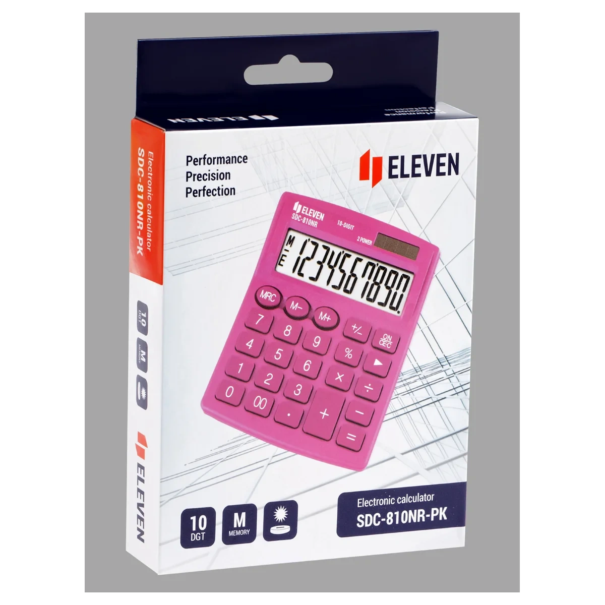 10-ти разрядный настольный калькулятор Eleven SDC-810NR-PK предназначен для выполнения арифметических операций. Оптимальный набор функций поможет автоматизировать расчёты: функция смены знака, коррекция последнего введенного значения. Двойное питание (солнечная батарея + батарея GP189(LR54)) и автоматическое отключение увеличивают срок службы. Размер калькулятора – 102*124*25 мм, вес – 94 г, цвет – розовый. Упакован в картонную коробку. Гарантия 5 лет.