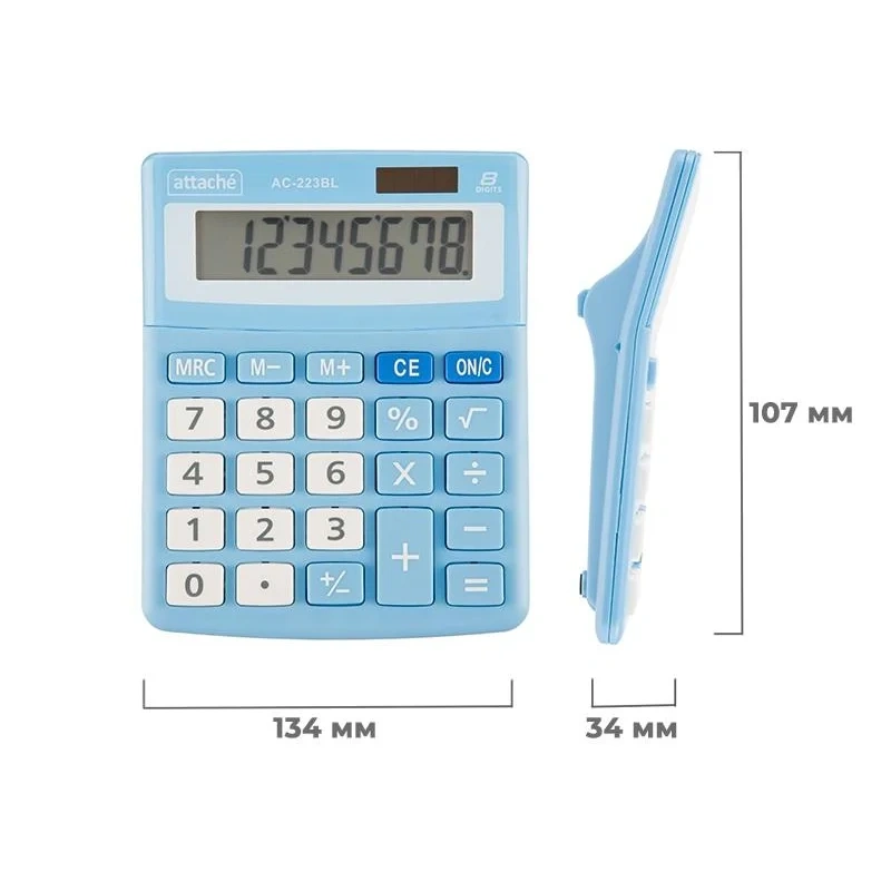 Калькулятор Attache настольный AС-223BL компактного размера с 8-разрядным ЖК-дисплеем.