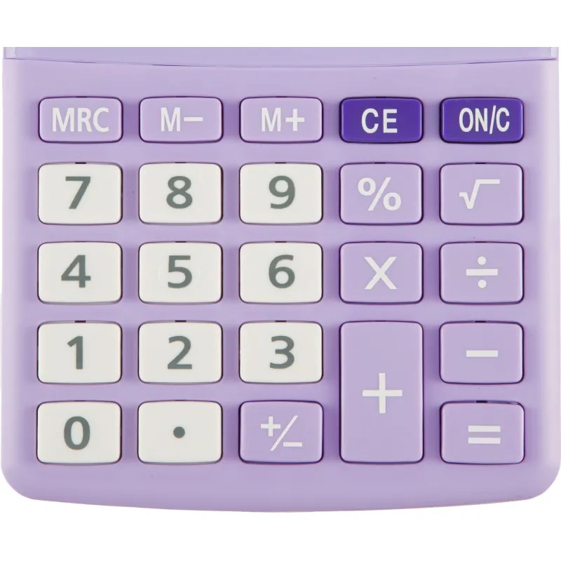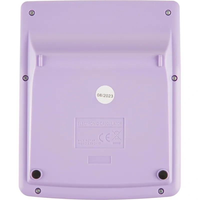 Эргономичная форма панели и крупные клавиши создают максимальный комфорт в использовании. Корпус изготовлен в фиолетовом цвете с кнопками белого цвета. Оптимальный и необходимый набор функций, среди которых: MRC, M+, M-, расчет процентов. Функция коррекции вычислений: нет. Функция вычисления налога: нет. Пересчет курса валюты: нет. Наклонный дисплей: фиксированный. В калькуляторе имеется два источника питания: батарейка типа LR1130 (входит в комплект) и солнечная батарея.