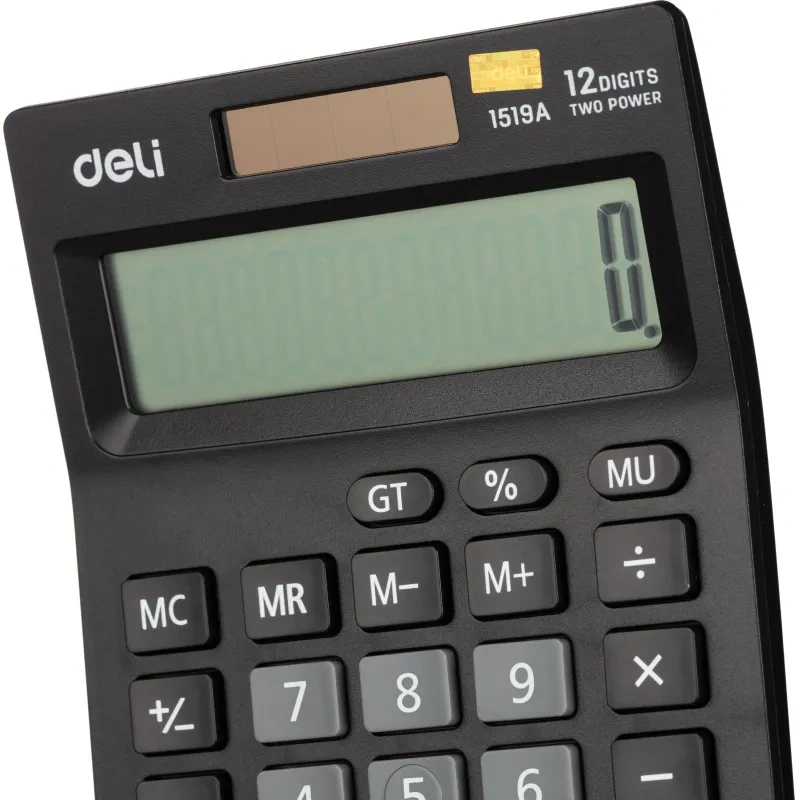 Калькулятор настольный КОМП. Deli E1519A, 12-р, дв.пит., 140x102мм, черный