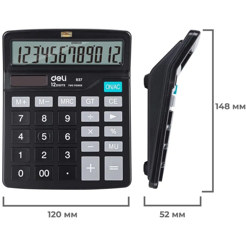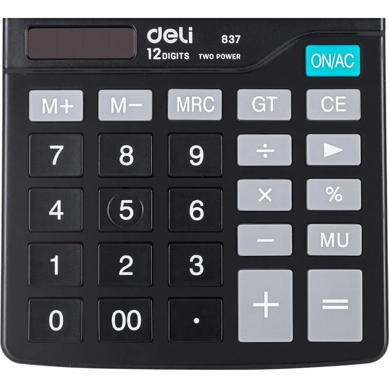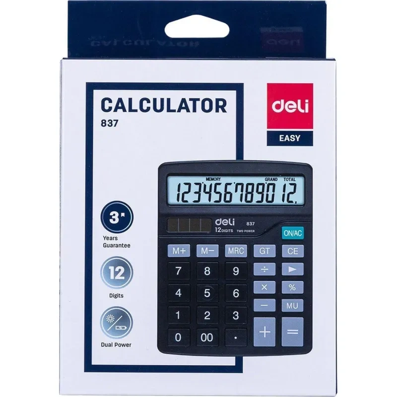 Калькулятор настольный КОМП. Deli E837, 12-р, дв.пит., 148x120мм, черный