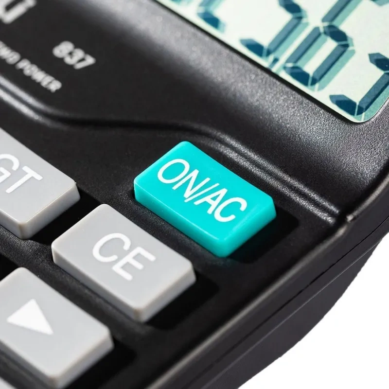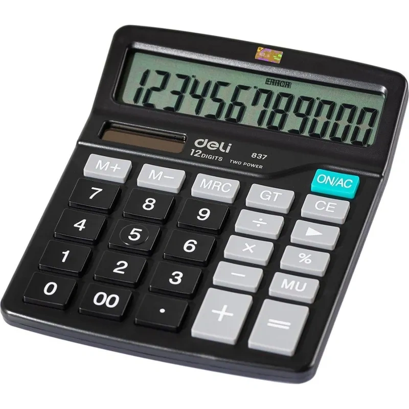 Настольный калькулятор Deli 837 — незаменимый помощник в офисе, школе и дома. Компактный размер, эргономичная форма, удобные кнопки. Оптимальный набор функций поможет автоматизировать расчеты: итоговое суммирование, независимая память, расчет процентов, вычисление наценки, коррекция введенного значения. Калькулятор в пластиковом корпусе, имеет большой 12-разрядный жидкокристаллический экран. Размеры: 148×120×52 мм. В комплекте 1 батарейка АА.
