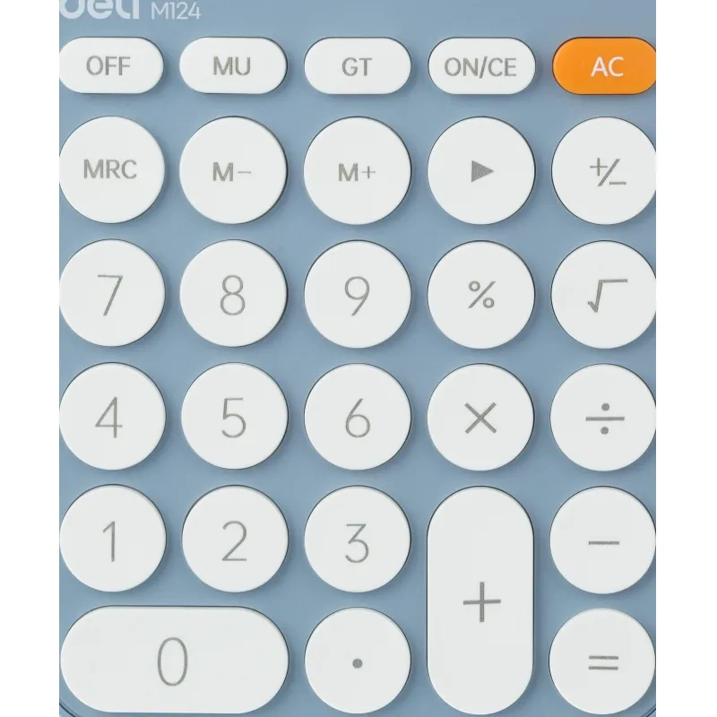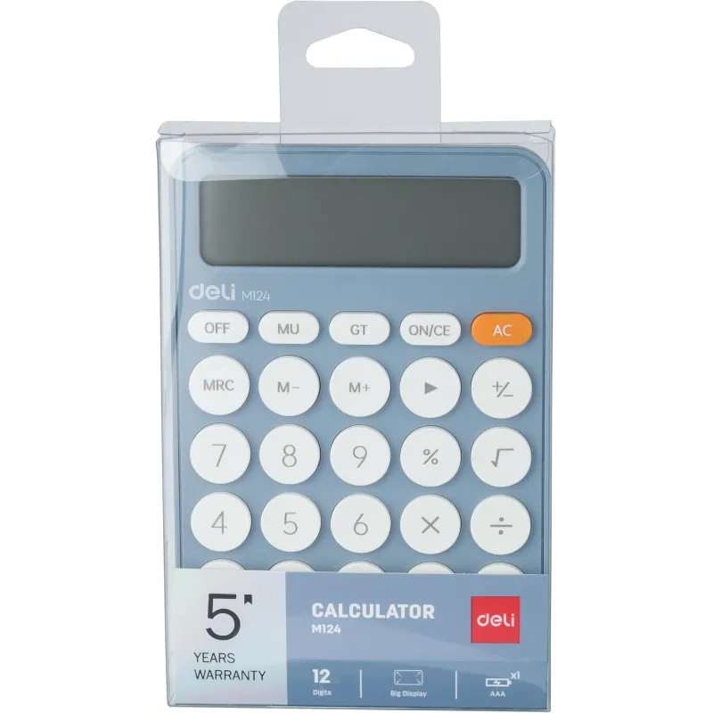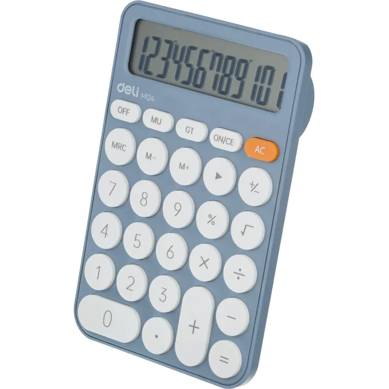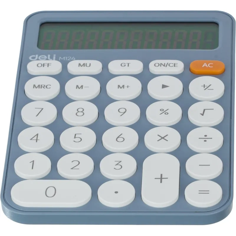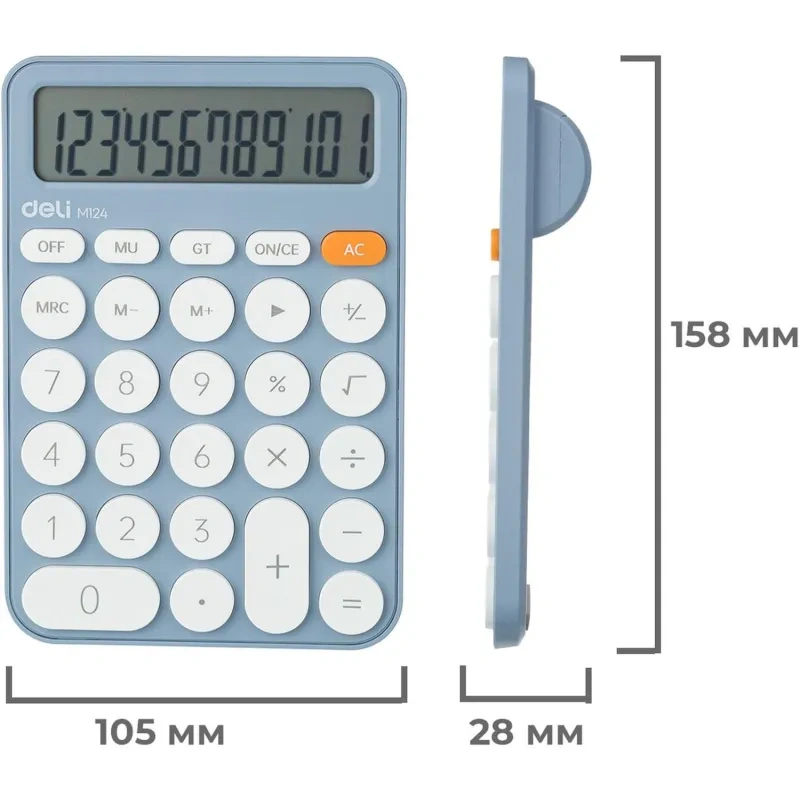 Калькулятор настольный компактный Deli EM124 в пластиковом корпусе, предназначен для выполнения сложных математических расчетов. Изготовлен из противоударного пластика. Калькулятор Deli — незаменимый помощник в офисе, школе и дома. Он компактный, удобный, прочный и надежный. Оптимальный набор функций поможет автоматизировать расчеты: вычисление квадратного корня, коррекция последнего введенного значения, расчет процентов, двойная память, расчет наценки, смена знака. Большой яркий дисплей калькулятора, эргономичный наклон корпуса и крупная клавиатура позволяют работать эффективнее. Может использоваться как бухгалтерский, школьный, офисный или домашний калькулятор. Имеет защиту памяти при отключении питания. Автоматическое отключение через 8 мин без использования или кнопкой OFF. Оригинальный яркий калькулятор работает от батарейки (в комплекте). Благодаря компактному размеру калькулятор не займет много места на рабочем столе. Цвет: голубой. Размер: 158×105×28 мм. Количество строк дисплея: однострочный. Разрядность дисплея: 12. Тип питания: 1 батарейка AAA. Тип дисплея: LCD, монохромный. Гарантия: 5 лет.