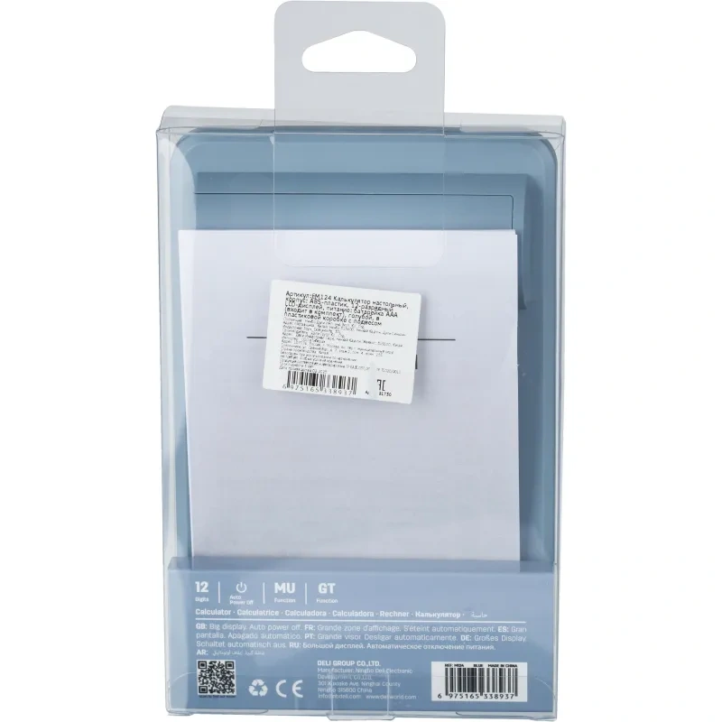 Калькулятор настольный КОМП. Deli EM124, 12-р, батар., 158x105мм, голубой