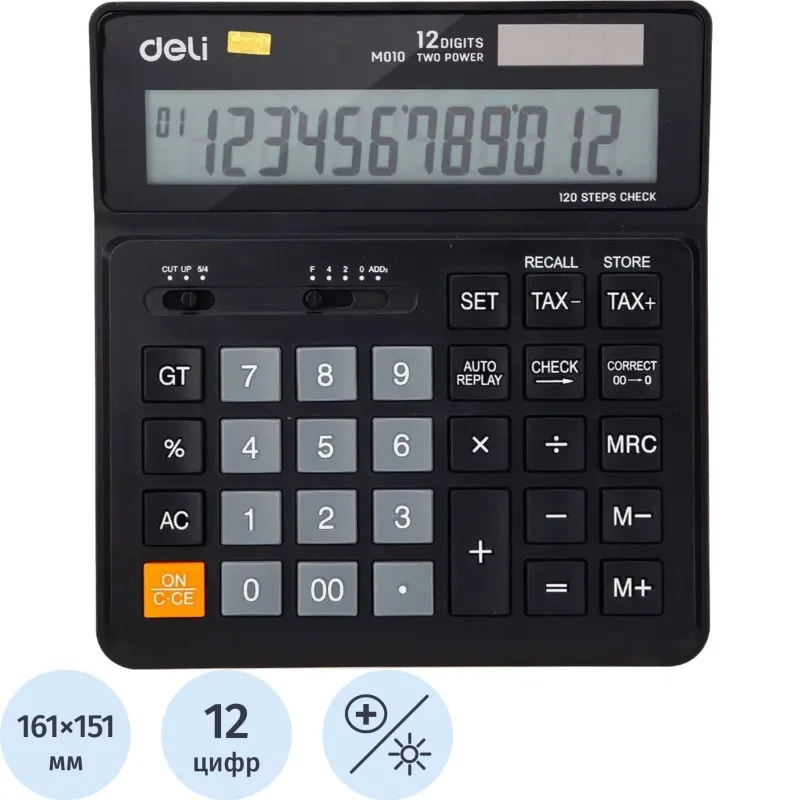 Калькулятор настольный КОМПАКТ Deli EM01020 черн 12-разр. Функ.вычис.налога