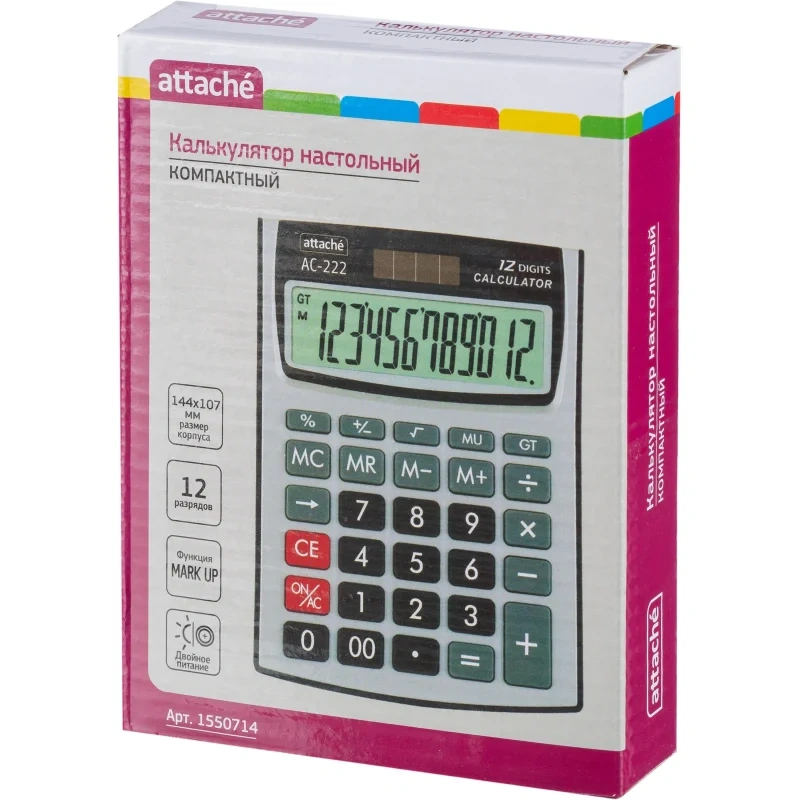 Калькулятор настольный КОМПАКТНЫЙ Attache AC-222,12р,дв.пит,144x107cереб