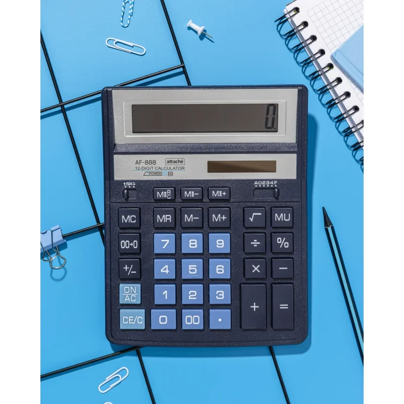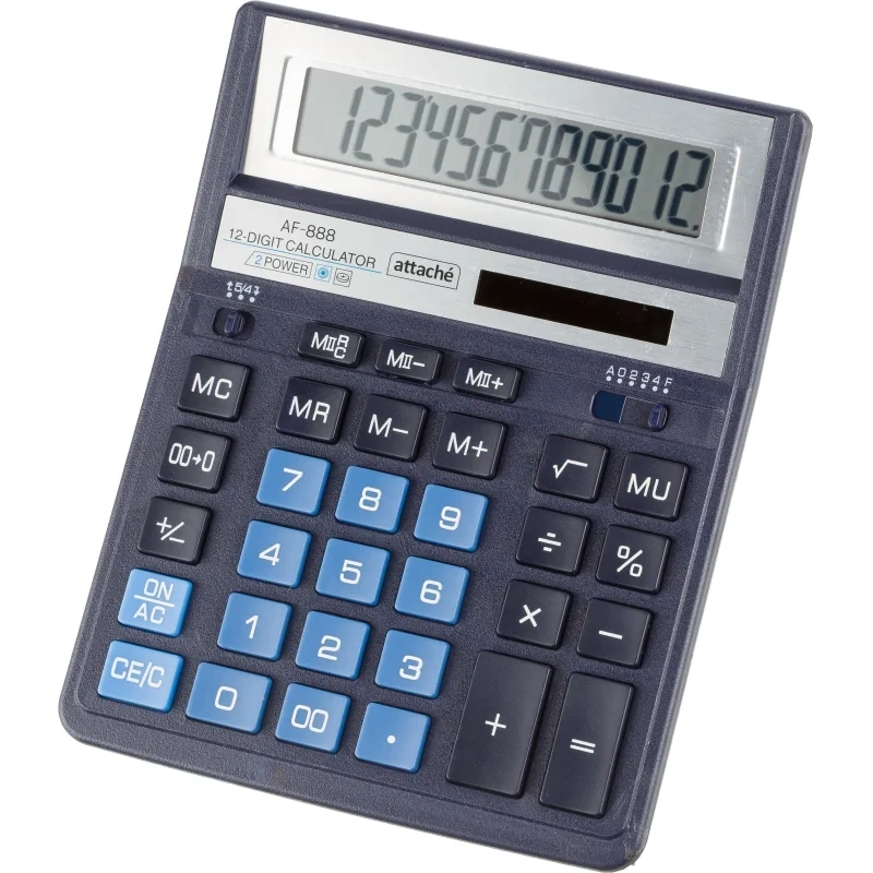 Калькулятор настольный ПОЛН.Attache AF-888,12р,дв.пит,204x158мм, темно-син